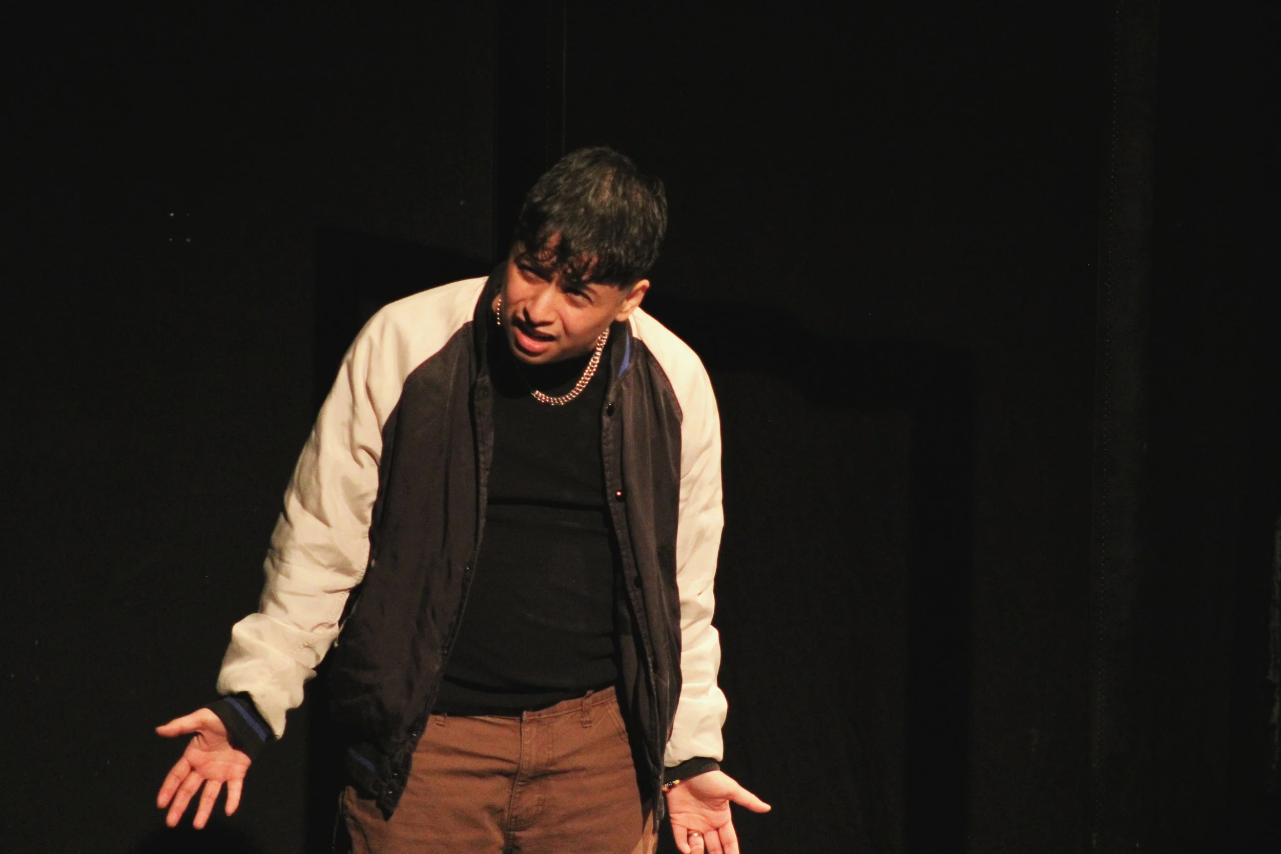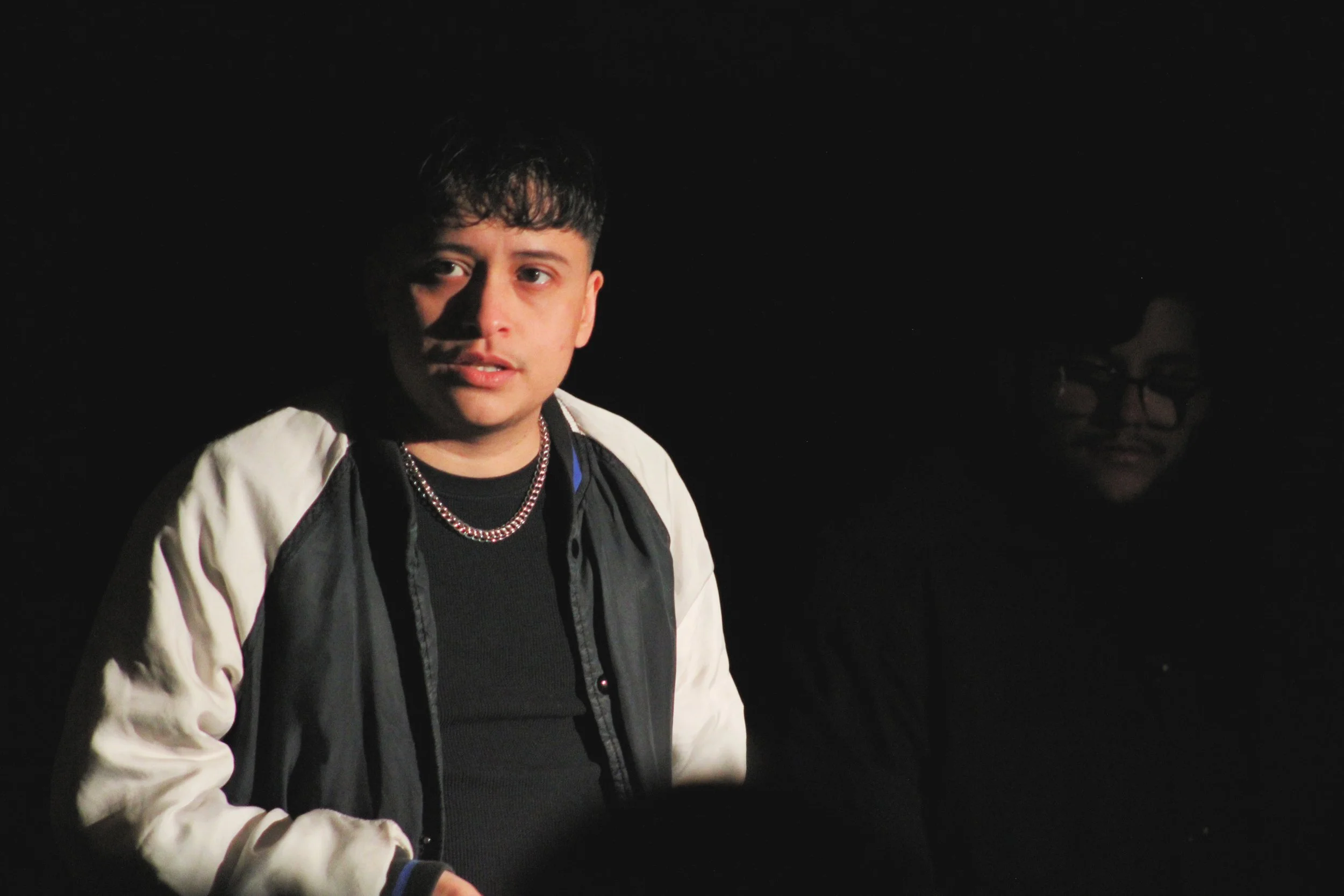 Máscara is a 30-minute comedy horror stage play that chronicles the individual experiences of a Latinx trans-masculine person during their gender affirming medical transition. This project was presented at Outsider Fest 2025. Photos are by Jon Cruz and Rolando Sepulveda II.